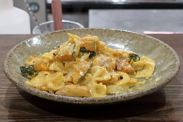 かぼちゃと鶏のローズマリークリーム 自家製おつまみショートパスタ(ファルファッレ)