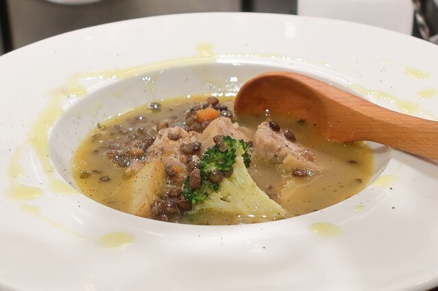 レンズ豆とコテキーノ(鶏ミンチソーセージ)のスープ仕立て