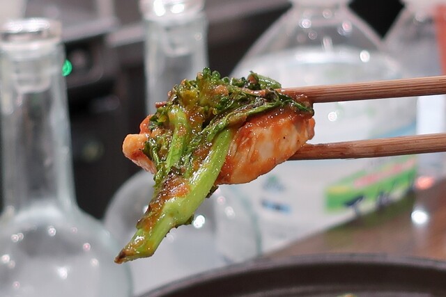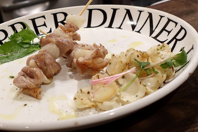 そして今度こそホンマのシメで頂いたんは前回も頂いた芽キャベツ 鶏のピンチョス アンチョビパン粉焼き。飲み物は熟撰生ビール1杯から、この夜のスペシャルドリンクである山口県からのお土産、雁木スパークリング 純米大吟醸 にごり生原酒。