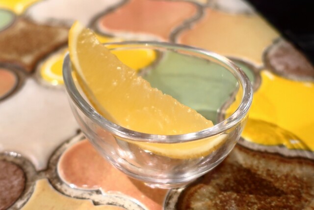 そして3人で頂いたんはポテサラベーコンのっけ、こだわりチーズ盛り合わせ、手羽元の鶏デミグラスコロッケ。途中に常連さんの実家で収穫された和レモンを頂きましたわ。しっかり黄色くなってから収穫された綺麗なレモン。味が濃くて美味でしたで♪♪