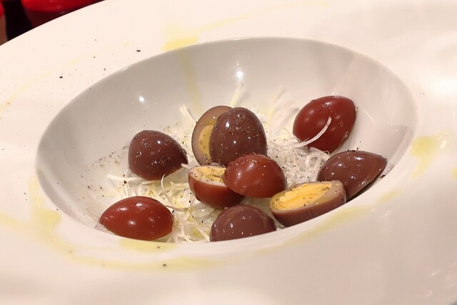 その後も うずら卵の2種類の赤ワイン漬けをアテに飲んでしまいましたで。結果、飲み物は熟撰生ビールを2杯やったかな。3杯やったかな。。