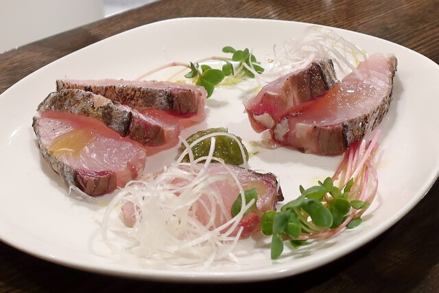 サワラのカルパッチョのサワラは、脂がのってるのを炙ってありましたわ。美味でした♪♪。今が旬の寒鰆ですな。そして小かぶは生ハムと合いますな(^з^)-☆