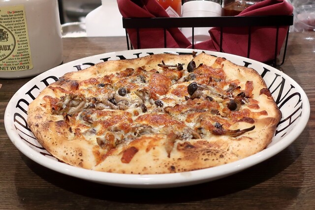 平日の4軒目で訪問。3軒目を閉店時間に出て、まあちょっと散歩でもして帰ろ!と歩いてたら何となくピザ食べたい気分になったんでココに寄ってみたらまだ大丈夫やったので入店しましたで(^^)