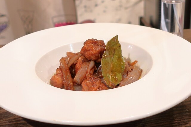 そして3人で頂いたんは、芽キャベツ 鶏のピンチョス アンチョビパン粉焼き、ちぢみほうれん草 もも肉のワインビネガー煮 ローマ風カチャトーラ。シメは新メニューのあんぽ柿と鶏のリゾット(仮名)。モチッとしたあんぽ柿の甘味がええ感じのリゾットでしたで(^^)
