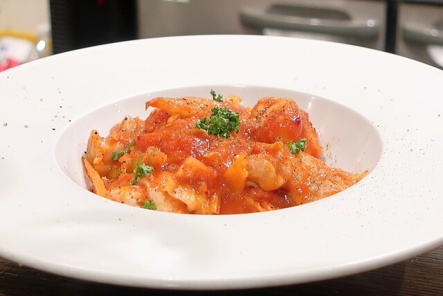 うどと鶏もも アラうどと鶏もも アラビアータソースビアータソース
