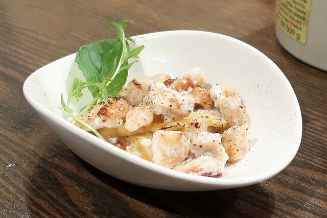 鉄板アスパラと鶏生ハムの粉チーズ掛け
