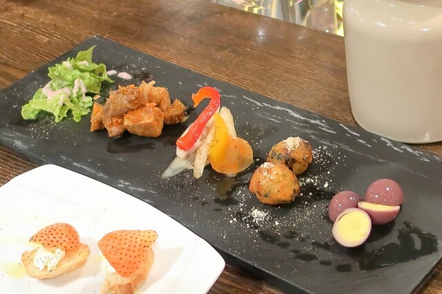 こだわり前菜盛り5種のうずら卵の赤ワイン漬け