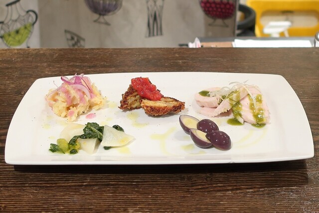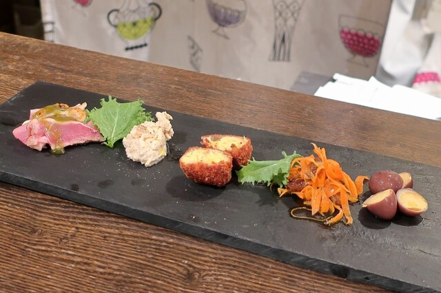 ももタタキ青ネギソース、奈良漬けとクリームチーズの洋風おから