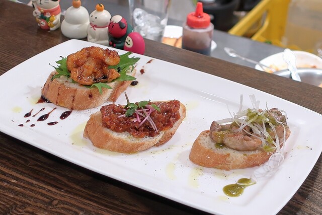 ブルスケッタ(トリチリ、ボロネーゼ、かもネギ)