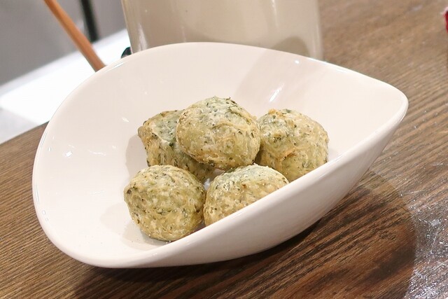 鶏ミートボールとポレンタのとうもろこし トマトソース