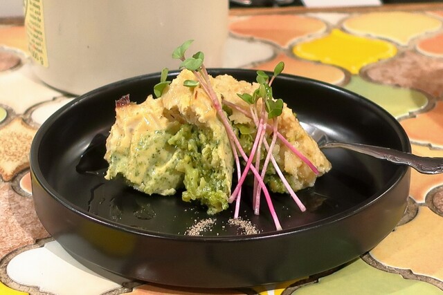 そして舞台の余韻に浸ったり、あれを1日2回やるというのはタフやなあ思たりしながら頂いたんは、春菊とりんごのクリームチーズ白和えと ホタルイカのピザ。