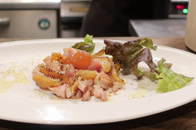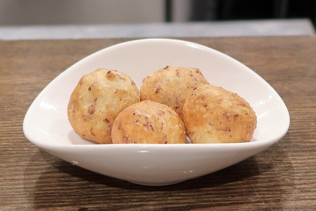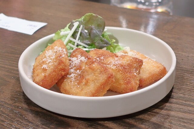 そして頂いたんは、こだわり前菜盛り5種、カプレーゼ サラダ仕立て、地鶏ももタタキの洋風ユッケ、しらすのゼッポリーニ。期間限定メニューの しらすのゼッポリーニは、自分の4個でしまいということで食べれて良かったです!。また来年食べたいな。。