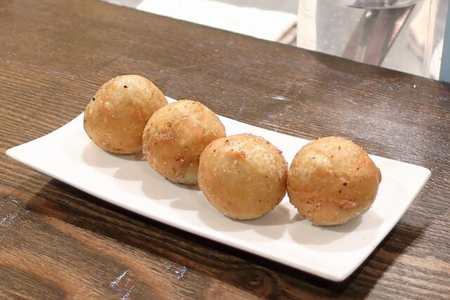 休日の宵の3軒目でたぶん3人シメ訪問。そして熟撰生ビール数杯と共に頂いたんは、生わかめのゼッポリーニとハーフ&ハーフのピザ1枚。しらすのゼッポリーニは終わってしもたけど、生わかめのんも美味しいです!