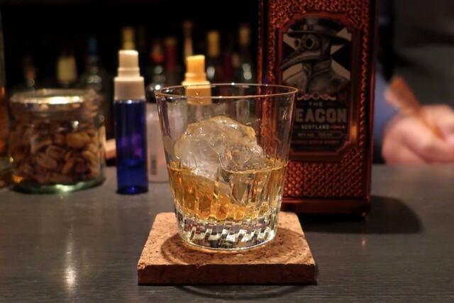 そして いつものチャームと共に頂いたんは、いつものソビエスキー2杯から ミクターズUS1 スモールバッチをロックで1杯。ミクターズて宜しいな(^^)