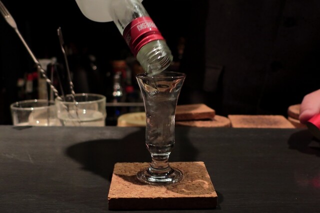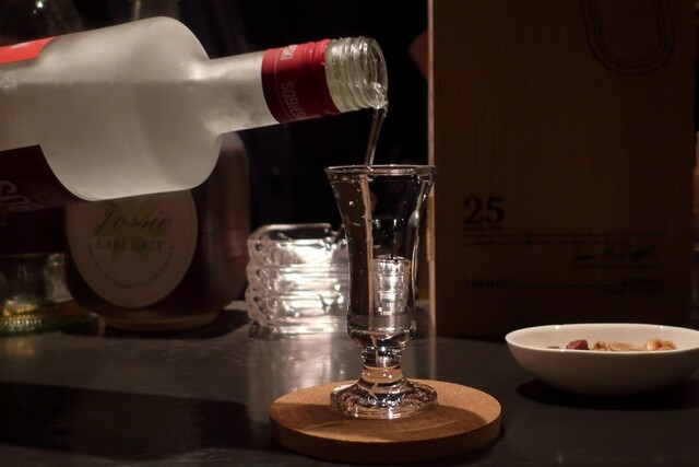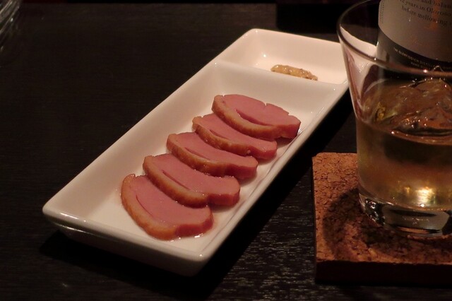 休日の宵の3軒目で1人訪問。そして頂いたんは何も言わんでも出してくれはるソビエスキー2杯とバーボン レベルリザーブのロックを1杯。アテはチャームのナッツと自家製ビーフジャーキーで(^^)