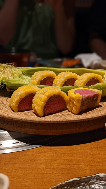 大好きな夏のよろにくの風物詩「肉もろこし」が食べられて感涙。生肉メニューもたくさん出てきて幸せな内容でした。