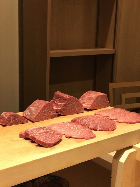 最後までカットを生で見れる空間のライブ感、特別感と流れる音楽、肉を焼く音まで全てが上質な空間でした。最高級の贅沢なお肉を料理長と焼き師に焼いて頂き大満足でした。