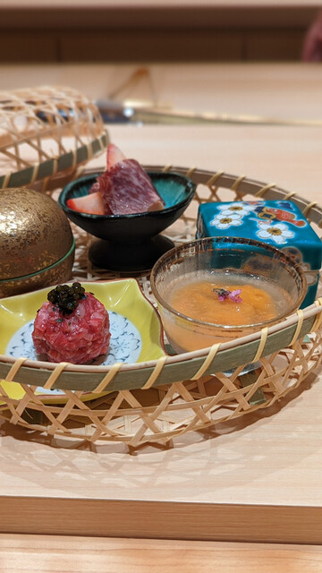 リブロースの蒸し寿司 柚子胡椒焼 橘の雲丹 N25キャビア