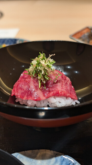 焼き物は、タン、サーロ、ヒレ、ハラミと好きな部位が目白押し。神谷さんのタンが相変わらず圧倒的に美味。肉寿司めちゃくちゃ美味かった。毎回アップデートが凄まじい。