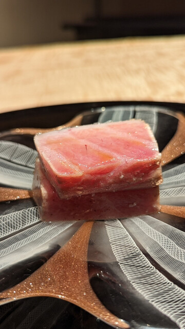 ・めじまぐろ 杉の木 すりおろした蕪の漬物