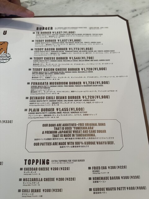◻︎TEDDY BURGER 1,800円