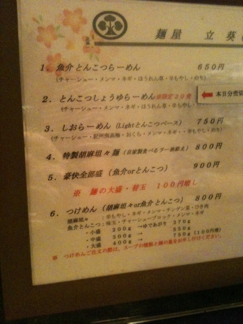 麺屋 立葵(高田馬場、下落合、目白/ラーメン、担々麺)
