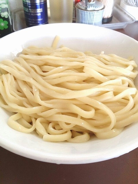 勝手に「柔らかめの縮れ麺」を想像していただけに、