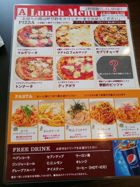 ピザは6種類からいくらでも選べます。ドリンクもフリー。