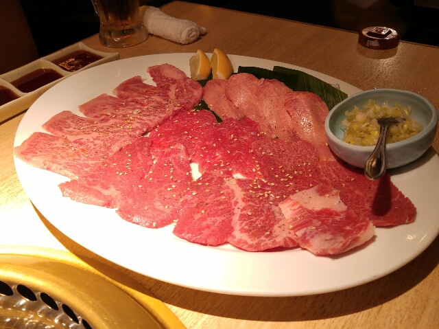 「渋谷でお手軽に焼き肉を食べたいなー」とお店を探していたところ、ここ七甲山はなかなかリーズナブルなお値段で黒毛和牛が食べられるらしく早速行ってみましたよ。予約しようと電話してみたのですが、予約は受け付けていないとのこと。ドキドキしながらお店に向かったのですがちょうど1席だけ空いていて、すべりこみセーフ。場所はマークシティの脇の路地ですね。表立って見える場所では無いので注意。店内、テーブル席が数席。それほど広くはないですが賑わっていました。このお店のウリと言えば、黒毛和牛牛一頭特選盛合せでしょうかね。いろいろな部位がありますが、おまかせで盛ってくれます。火はガスでした。火力が安定していて調整できて楽ですね。タレは3種類ありまして、ぱっと見、あまり違いがわからなかったのですが、壁にタレの説明が貼ってありましたよ。わさび醤油・焼肉のタレ・おろしポン酢の3種類。味が変えられるのはうれしいですねー。2〜4人前、3,780円のお肉がやってまいりました。どれもこれも分厚くて、とてもうまそうだ!特にタンがやばいですね。早速焼いて食べてみましたよ。うーんやわらかくてうまい。。ドンドン食べられますね。5人で行って、この2〜4人前を2回頼みました。卓上には岩塩の塊とおろし金が置いてありまして、これで塩を振って食べてもよいですね。お肉以外にもキムチやナムルを頼みました。サイドメニューも美味しかったです。このお店、お肉もリーズナブルですが、生ビールが390円と、実は飲み物も結構お安い感じ。マッコリはカメで980円でした。たらふく食べて飲んで、5000円いかないぐらいでした。大満足です。また行こう。ごちそうさまでした。
