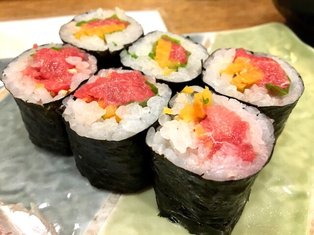 トロタク巻き。本当に良いところのトロがギューギュー入っていた。めっちゃ美味しい。10本ぐらい食べたい。