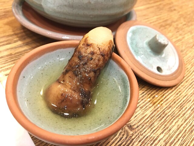 松茸土瓶蒸し。このような贅沢なものを食べたのは何十年ぶりでしょうか。やっぱり美味しいですね、土瓶蒸し。小ぶりながら松茸がゴロンと一本入っていました。海老と鱧も。