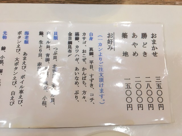 コースは1500円から3500円までの4種類。われわれはもちろん一番量の多い「店長おまかせ」を選択。
