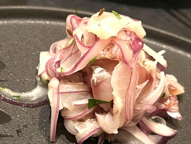 ・イサキと赤玉ネギ、クミンのサラダ