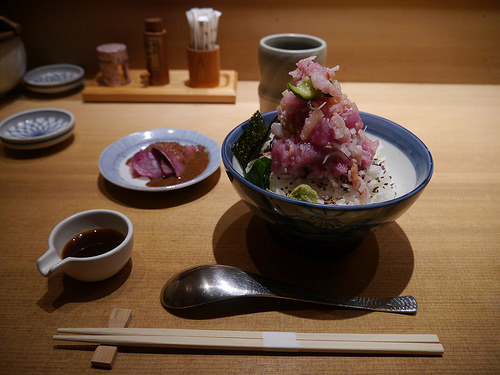 今回は、初めてなので梅を頼みました。こちらは、生マグロ、イクラ、ボタンエビ、中落ち、数の子、ツブ貝、ミル貝、イカ、キュウリの9種の具材が奇跡の融合!