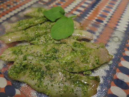 バジルで、お肉がさっぱりして食べやすい。お酒のお供にいいね~