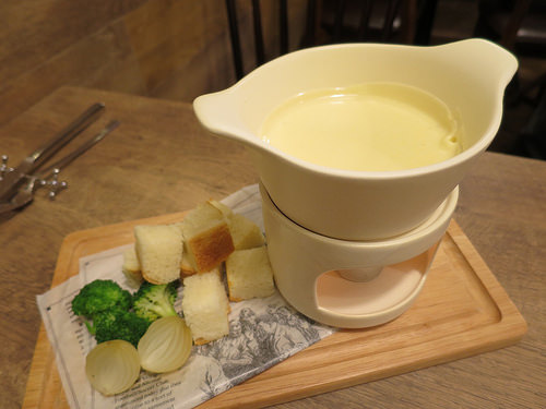 スイス産チーズを使ったチーズフォンデュ。白ワインのいい香りがする