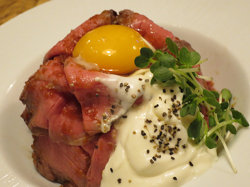 ローストビーフがなんと8枚も!チーズでコクを出した特製クリーミーマヨネーズと秘伝のタレがかかっており、これがまたローストビーフと絡んで美味しい。そして、とろとろの黄身がマッチして格別だ!量はそこそこなので、女性でもぺろりと食べれちゃう。ランチメニュー限定につき、ローストビーフがなくなり次第終了とのことなので、早めのランチに行って是非、味わって欲しいです。