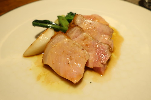 ベニエとは軽いフリットの事だそう。新鮮な採りたての山菜達の、うど・もみじがさの下に蓮子鯛のフリッドがスープの上に浮かんでいました。 魚介系の濃厚スープに新鮮な山菜を合わせると更に旨味が引き出されますね!口に中に山菜の優しい味わいがふわっと広がり絶品です。また、魚沼産コシヒカリ玄米粉のパンもあまりにも美味しくて何度もお代わりしちゃいました!焼きたてパンはたまりませんね~