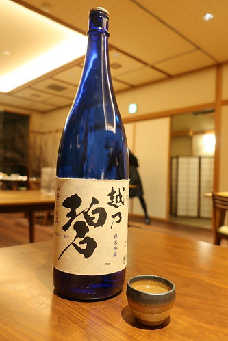 玉城屋に宿泊しないと飲めないお酒とのこと。地元の越淡麗というお米で醸した純米大吟醸を-5℃の管理下で熟成させているそうです。 熟成されているからか、ふんわりまろやな味わいで、白ワインのような華やかな香りも凄くいい!華やかな日本酒と雪下人参のムースふきのとう南蛮海老との相性良いですね。