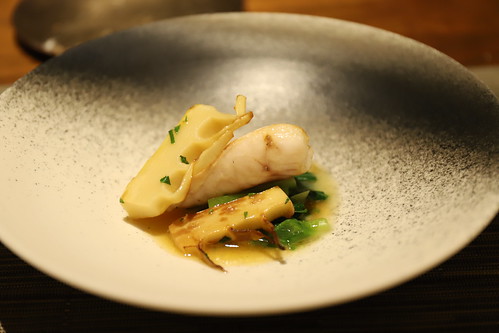 うるいタケノコこれもビックリするほど美味しかった逸品!プリッとした白身とサッパリした山椒の葉のソースが相性抜群!うるいとタケノコも新鮮でシャキシャキした食感もたまりません。