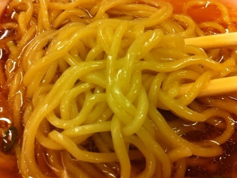 麺は、パプリカの粉末を練り込んだという平打麺。