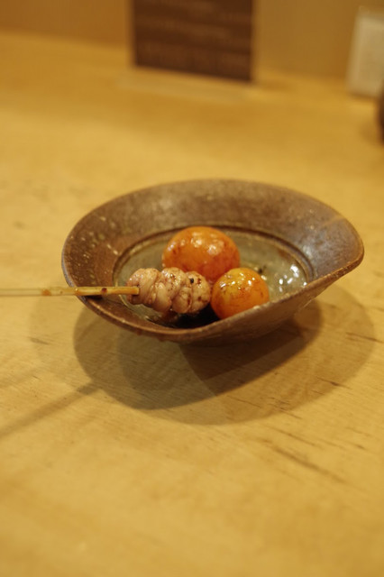 首皮ももも肉と同様にオスとメスを選ぶことができる。香ばしさが素晴らしく、一口含むと首皮の旨みが溢れ後から甘みが追いかけてくる。