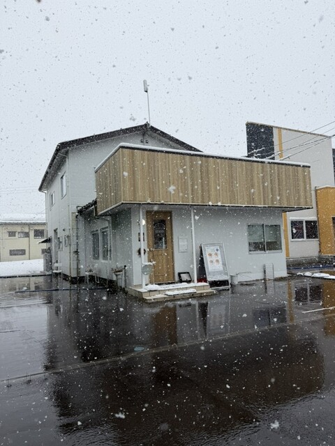 六日町駅の東口側でランチ後ジャンジャン雪の降る中