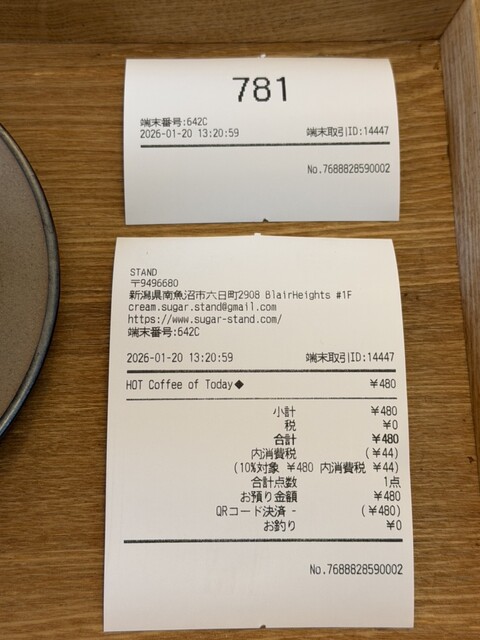 〇 Today's HOT Coffee Tall 480円