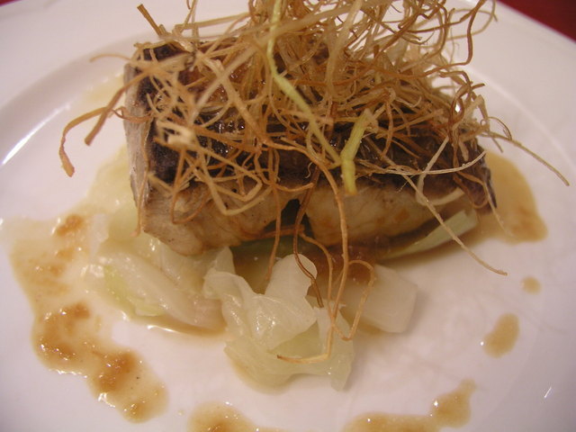 写真の赤いものがかかっているお魚ですが、赤いのはビーツという野菜だそうです。
