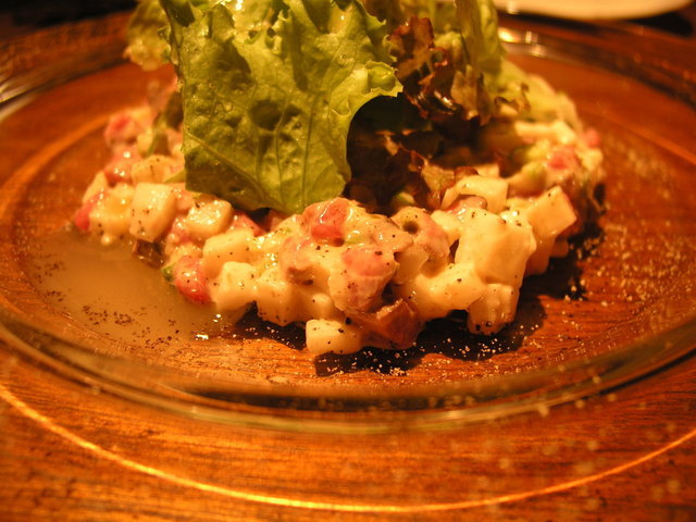 写真にあるいもにブルーチーズソースをかけたもの、こってり重たい塩っ気、ブルーチーズの香り!