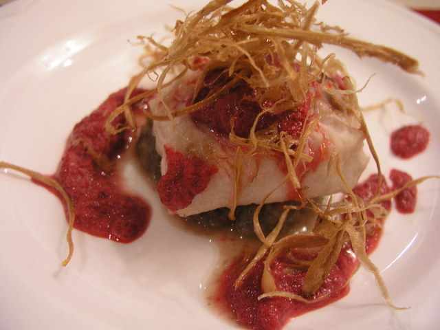 写真の赤いものがかかっているお魚ですが、赤いのはビーツという野菜だそうです。