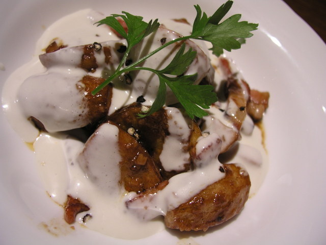 写真にあるいもにブルーチーズソースをかけたもの、こってり重たい塩っ気、ブルーチーズの香り!