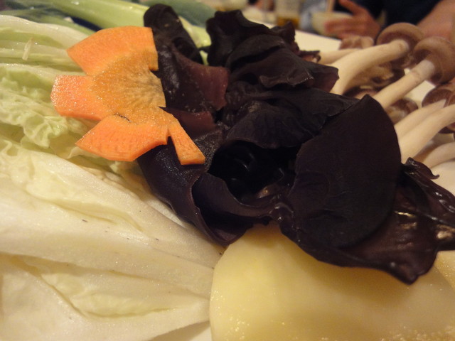 こういうお鍋の経験は3回目くらいで、辛いもの好きな私は赤いほうで食べることにしました。(どちらでも食べれますがw)
