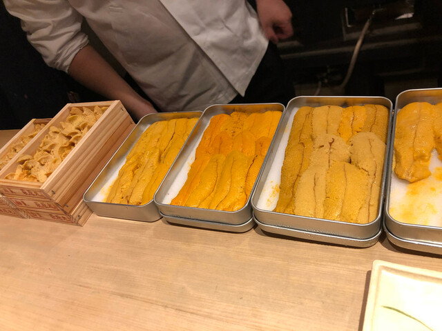 メインの一つ、ウニが手巻き寿司に